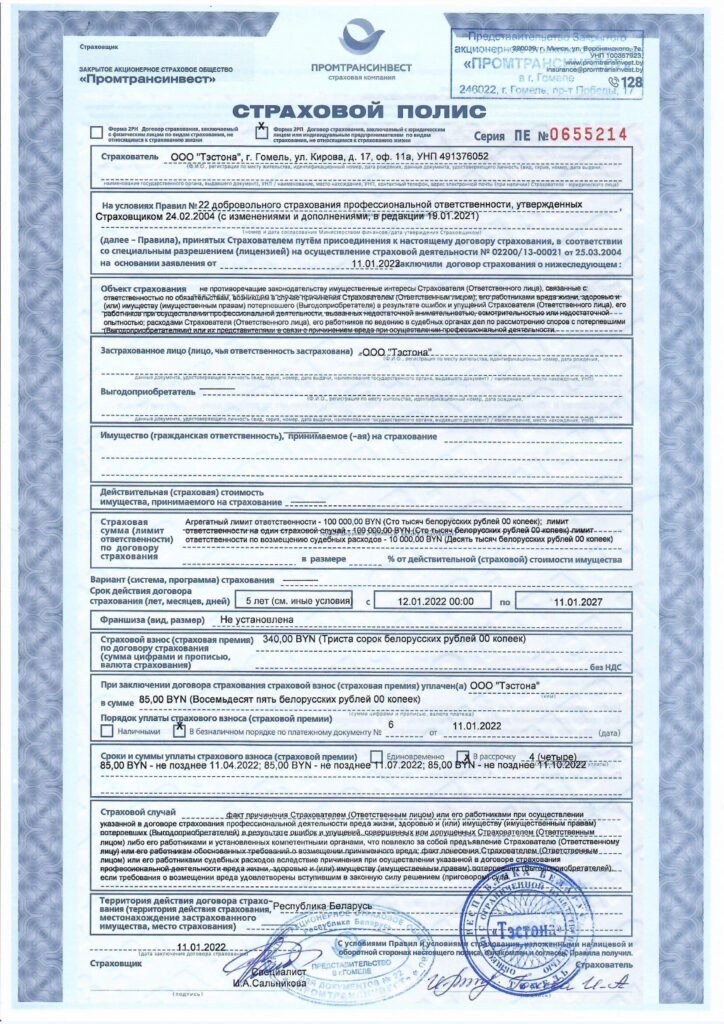 - Оказываемые нами услуги застрахованы, а наши специалисты несут ответственность за результат.